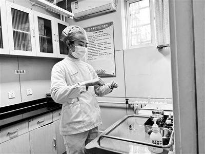 早上7点50分,东城区东华门社区卫生服务站里,护士姜珊正在擦拭着治疗台面。随后,她再次确认治疗仪器是否处在备用状态。十分钟后,社区卫生服务站开诊,姜珊也开启了新一天的忙碌。