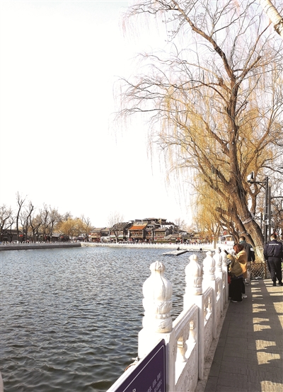 “柳堤春晓”:“西涯八景”之一,“西涯”指什刹海,因明代文学家李东阳自小在什刹海边一个叫西涯的地方长大,并写下《西涯杂咏十二首》,吟咏这一带的景色,于是“西涯”便成了代称。这里的“柳堤”指的是什刹海前海的堤岸,清代时大堤宽约五丈,长约五十丈,把前海一分为二,两旁都是老柳树,当春风来临时,堤岸上的柳树呈现出一派新绿,微风中柳树已展露碧翠的身姿,将那点点鹅黄抽成万缕绿丝,婆裟婀娜,令人赏心悦目,如今仍是京城看柳的好去处。