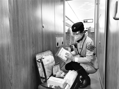 化好工作妆,盘起头发,朱丹娜给了镜子里的自己一个自信的微笑。准备好值乘所需的防疫备品,口罩、护目镜、手套……她再次逐一进行检查,确保防护到位。“G8825次全体人员下站台。”朱丹娜在电台里下了一声指令,“雪之梦”班组一天的工作开始了。她们快速定位备品,进行列车出库卫生、设备设施、防疫备品、消耗品的定位检查。开车前10分钟在车门口处立岗迎接旅客乘车……
