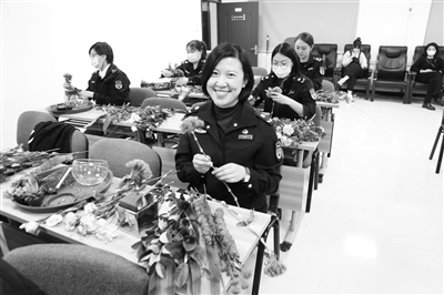 近日,怀柔城管执法局工会组织女职工开展以“展巾帼风采 谱城管新篇”为主题的花艺培训活动。培训师从花种、剪裁、搭配等方面进行讲解,女职工们发挥创意,亲手制作了精美的作品,体验到插花制作的乐趣。本报记者 崔欣 摄影报道