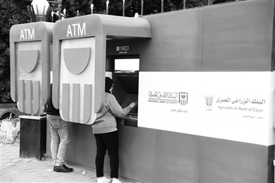 图为人们在埃及开罗一家银行外使用ATM机。据新华社