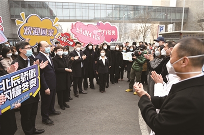 “欢迎回家”“你们辛苦啦”……3月24日9时30分,五洲大酒店隔离区域大门缓缓打开,结束隔离的北辰职工们陆续走出来,受到了同事们的热烈欢迎。至此,北辰集团闭环内服务保障北京2022年冬奥会和冬残奥会的2000余名职工全部结束隔离,进入居家观察阶段。当天,北辰集团工会举行了简短的迎接仪式,感谢他们的辛勤付出和无私奉献。(相关报道详见第5版)