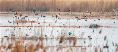 阳春三月,延庆区野鸭湖开始热闹起来。大批越冬候鸟回归野鸭湖。野鸭湖湿地自然保护区是国际鸟类迁徙路线东亚——澳大利亚路线的中转驿站。每年春秋两季,大天鹅、小天鹅等众多迁徙候鸟将在这里中转、休憩,补充体力。