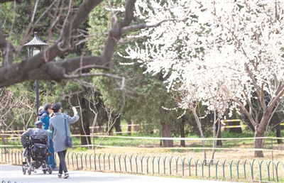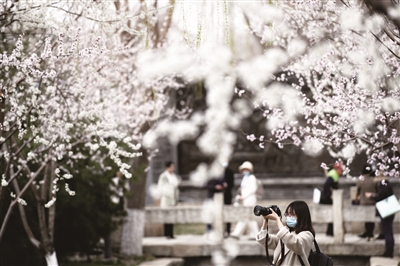 在确保防疫安全的前提下,京城的各大公园和景点,均迎来了新一波的看花潮。花前树下,人们拍照留影,在春光中洒下一串串欢声笑语。