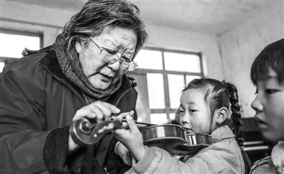 最后,宏伟妈带我走入我曾工作生活过的马兰小学,邓小岚给“马兰小乐队”上课的音乐教室就在这里。穿过头顶写有“岁月如歌”四个红字的廊道,一间音乐气息浓郁的教室映入眼帘,音符在墙上跳跃,五线谱写满黑板,钢琴、小提琴、手风琴、吉他等乐器静默着。宏伟妈说:“邓老师就是在这间教室里,送出了好几代‘小乐队’成员。他们真是幸福,赶上了好年头,遇到了邓老师!”