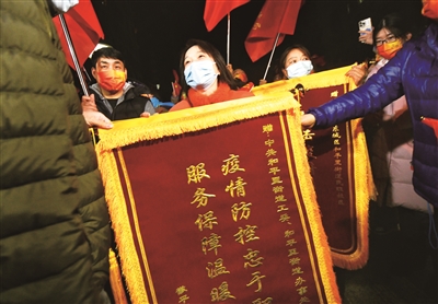 和平东街9号院的居民则举行了简短的庆祝仪式。一位居民说:“这些日子感谢社区工作者对我们的付出,帮我们买药,充燃气,给我们送东西。”虽然解封时间在深夜,还是有闻讯而动的居民送来了锦旗。