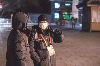 当然,面对极端天气,雷柏林与同事们也在积极想办法解决。他时刻关注天气情况,为了避免大风对道旗旗面的破坏,多次启动应急方案,临时摘除道旗旗面加以保护,确保了活动当日景观的完美呈现。“按照规定,演职人员从下车到返回车内,不得超过三小时;步行距离不得超过三公里,但延庆太冷了,我们必须再想办法克服严寒的影响。”雷柏林告诉记者,在与属地相关单位沟通过程中,他积极推动设置临时休息区,尽可能给现场观众和演员提供防风保暖、休息的场所。在八达岭长城,原来的景区饭店和保洁驿站都被用为临时休息区,看到大家不用在零下十几摄氏度的天气里瑟瑟发抖,雷柏林由衷地感到欣慰。