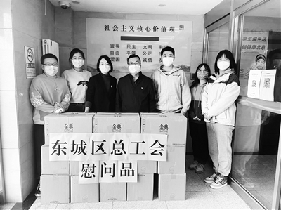 近日,东城区体育馆路街道工委、街道总工会走访慰问了辖区一线抗疫工作人员,送去了牛奶、巧克力等慰问物品,并对他们表达了崇高的敬意和深深的感谢。