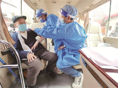 “考虑到老年人身体不便,活动范围有限,我们就把接种小分队派进社区、深入楼门院,通过开设移动疫苗接种车、设置临时接种点等方式,打通疫苗接种服务的‘最后一公里’,给老年人提供最便捷、最安全的保障。”朝阳区卫健委副主任肖志锋在接受记者采访时表示,朝阳区是新冠病毒疫苗接种的大区,全区60岁以上老年人有71万人,目前,接种完第一针的老年人有50多万,接种完第二针的也有40多万。除200多个疫苗接种点位外,每天还有60多个疫苗接种小分队就近为居民提供接种服务。