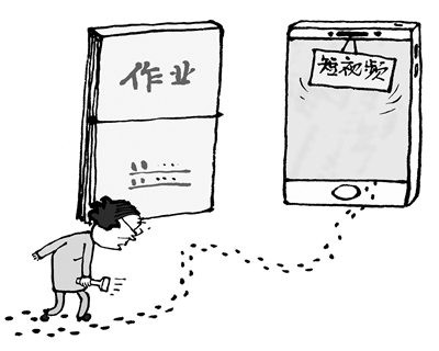 开学以后,家住浙江杭州的周女士遇到件烦心事:“孩子天天刷短视频,说也不听,马马虎虎写完作业就赶紧抱着手机。”为了方便家校联系,周女士给上初一的孩子买了一部新手机,没想到孩子却对刷短视频上了瘾。周女士对此很焦虑:“短视频的内容五花八门,手机在他自己手上,家长又不能时刻盯着。孩子正值学习成长的关键时期,这么下去学习成绩肯定要下降,着急啊!”(4月11日《人民日报》)□王铎