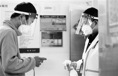 4月11日清晨,准备完配送车辆的配送员朱永康在上海市杨浦区盒马鲜生宝地广场店向值守人员出示核酸证明、健康码。