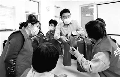 学习安全生产和消防技能是北京阳光北亚家政服务公司新职工上岗前的第一堂培训课。在近日开办的培训课上,辅导员讲解并示范了灭火器的使用方法,对职工当场进行实操测评,确保每一位职工能够掌握基本的消防知识和灭火技能。万玉藻 摄影报道
