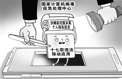 国家计算机病毒应急处理中心近期通过互联网监测发现17款移动App存在隐私不合规行为,违反网络安全法、个人信息保护法等相关规定,涉嫌超范围采集个人隐私信息。(4月24日 新华社)□朱慧卿