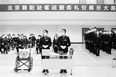 日前,中国铁路北京局集团有限公司北京朝阳站开展铁路客运服务礼仪展示大赛,从职工仪容仪表、言行举止、文明用语等方面展示铁路客运职工的风采。为举办此次活动,朝阳站干部职工利用工余时间进行训练,为即将到来的“五一”小长假提供优质的服务。