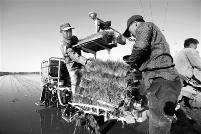 黑龙江省统筹疫情防控与备耕春耕生产“两手抓”,坚持早启动、高标准、快推进,全力抓好粮食和重要农产品生产供给。截至5月17日,全省农作物已播种超19000万亩,完成计划超八成;水稻正值插秧高峰期,已完成六成以上。图为5月18日,在黑龙江北大荒农业股份有限公司七星分公司的稻田中,种植户在进行插秧作业。