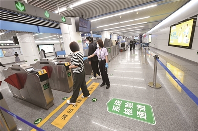 5月29日,在地铁景泰站,完成健康宝绑定的乘客从系统核验通道直接进站。昨天,记者从市交通委了解到,目前,本市64座地铁站和5条公交线路已启动票务升级测试。完成一卡通或地铁公交的乘车码升级后,刷卡、扫码时系统将自动核验是否具有48小时内核酸阴性证明,不再需要人工查验,核酸证明超出有效期的乘客将不能乘车。