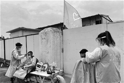 户外作业的建筑工人,由于建筑工程有工期进度和严格质量要求,他们不畏严寒酷暑,不惧风吹日晒,常常还需要加班加点工作,其辛苦程度不言而喻。当下,有些地方或单位由于疫情防控需要,一些建筑工程的工地采取了封闭式施工管理,工友们想要上城里的理发店去理个发很不方便,也可以说是他们的一件烦心事。