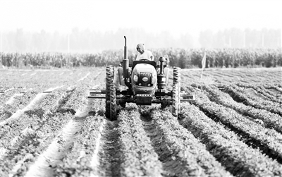 6月21日,在石家庄市行唐县南桥镇东安太庄村花生种植基地,农民驾驶农机在田间劳作。当日是夏至节气,河北省石家庄市行唐县农民抢抓农时,积极开展田间农事活动。