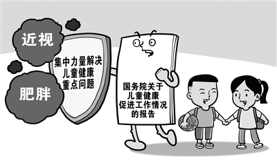21日提请十三届全国人大常委会第三十五次会议审议的国务院关于儿童健康促进工作情况的报告显示,我国集中力量解决儿童健康重点问题,综合防控儿童青少年近视,加强儿童青少年肥胖防控,全力推进儿童健康促进工作。(6月21日 新华社)□朱慧卿