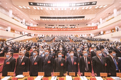 6月27日9时,中国共产党北京市第十三次代表大会在雄壮激昂的国歌声中隆重开幕。蔡奇同志代表中共北京市第十二届委员会向大会作题为《在习近平新时代中国特色社会主义思想指引下 奋力谱写全面建设社会主义现代化国家的北京篇章》的报告。(相关报道详见第3版)本报记者 彭程 摄影报道