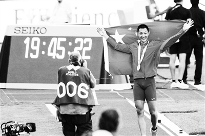 7月16日,在美国俄勒冈州尤金市举行的2022世界田径锦标赛男子跳远决赛中,中国选手王嘉男以8米36的成绩夺得冠军。 新华社发