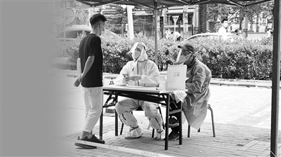 下沉工作期间,我迅速转变角色定位,听从垡头街道统一指挥,主动与分配社区对接。此次下沉的社区具有涵盖居民楼多、密度大、占地面积广、小区内人口众多、人员结构复杂等特点,同时距垡头西里确诊病例楼区近,社区急需一线核酸检测扫码人员配合朝阳区大规模核酸筛查工作。为此,我主动请缨化身“大白”加入抗疫一线,“零距离”为社区居民服务。