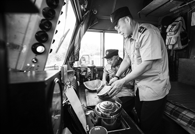 特殊的作业性质、特殊的工作环境、特殊的班组构成,这就要求所有班组成员都必须是身兼数职的行家里手。家常厨艺自不必说,常年吃住在车上,谁能没有一两道拿手菜;远离保障维修基地,机车保养维护甚至修理也是各个门儿清;麻雀虽小,五脏俱全,司机长、安全员、质量员、工具员、宣传员、核算员,每个人各司其职,落实作业标准和规章谁也不走样。