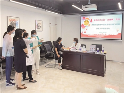 东城区交道口街道总工会联合北京市鼓楼中医医院“京城名医馆”,开展“送健康”免费义诊、贴三伏贴活动,维护职工劳动健康权益。