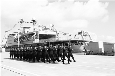 8月1日,南部战区海军某防救支队组织队列会操。军人的节日有欢乐、有休整,更有坚守和奉献。今天是八一建军节,解放军和武警部队官兵在各自战位上,以军人特有的方式庆祝中国人民解放军建军95周年。 新华社发