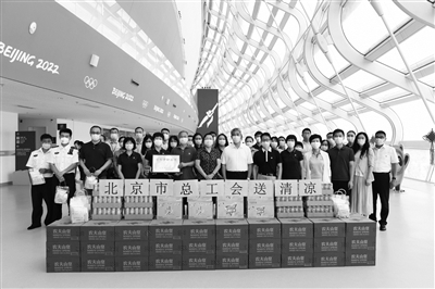本报讯 (记者 刘欣欣) 8月5日下午,市总工会党组成员、经审委主任司建带队来到国家速滑馆,为一线劳动者们送去防暑降温物资和工会组织的关爱。