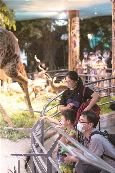 18点30分,距离“博物馆之夜”启动还有半小时,不少参观者已经到来。天色渐暗,博物馆的“夜生活”正式登场。拿到博物馆护照手册的大小朋友迫不及待地进入各大展厅,按图索骥探秘“大自然”。