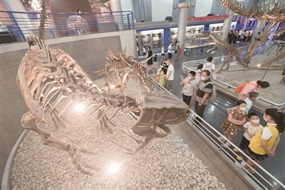写出图中四种生态系统的名称;列举濒危、极危、灭绝动物各两例;列举一个生活中应用的仿生技术……在“动物——人类的朋友”展厅,8岁的亮亮正和父亲“解锁”打卡手册上的题目。他仔细阅读着每块展板上的文字,生怕错过了答案。身旁的父亲更是聚精会神,拿着笔不停地记录着。倚在墙边、蹲在地上、伏案栏杆……游走在自然博物馆的展厅中,参观者们专注地答着题。