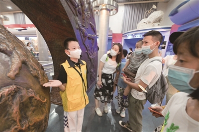 博物馆科普部工作人员准备手工材料、志愿者就位博物馆门口发放手册、优秀小讲解员在展厅带来讲解、导览人员维护馆内秩序……8月2日到8月6日,五个夜晚记录着北京自然博物馆工作人员的忙碌,也记录着博物馆“夜生活”带给参观者的快乐。