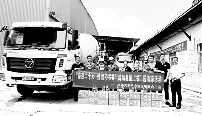 8月3日,四川省攀枝花市京福汽车千力达运输联合工会举行“喜迎二十大 悦读沁书香”流动书屋“书”送清凉活动,为职工会员们送去“精神食粮”和夏季饮品。 活动当天,攀枝花市京福公司负责人及攀枝花市总工会第三蹲点组成员等一行人为公司搅拌站的货车司机们送去了京福汽车千力达运输联合工会职工书屋的150本图书。(8月10日《四川工人日报》)
