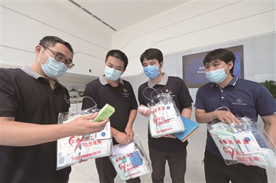 8月11日,北京市总工会党组书记张良带队赴北京奔驰汽车有限公司生产一线调研慰问,为劳模、工匠和先进职工代表送上包含风油精、饮料等物品的慰问品。(相关报道详见第4版)