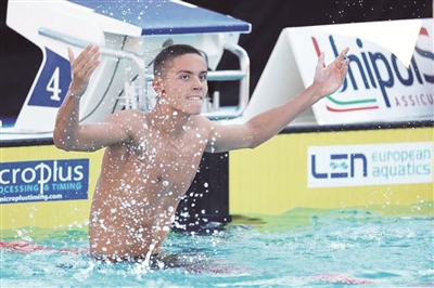 新华社电 同一个泳池,全新的世界纪录。当地时间13日,17岁的罗马尼亚新星波波维奇在罗马欧洲游泳锦标赛上,以46秒86的成绩改写男子100米自由泳世界纪录,成为该项目历史上最年轻的世界纪录保持者。