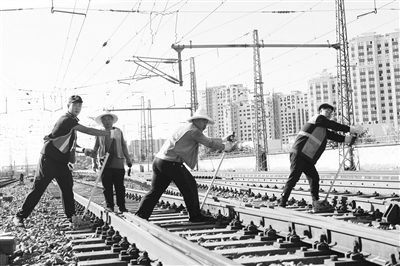 进入暑期以来,中国铁路北京局集团有限公司丰台工务段的“巡热工”们,以新开通的北京丰台站、北京西站等客货运枢纽“战场”为重点,加密巡热频率、及时组织集中整修,着力提高关键薄弱设备质量,为暑运以来良好的运输秩序提供保障。图为丰台工务段黄村线路车间的职工正在巡热并对设备病害进行整治。本报记者 彭程 摄影报道