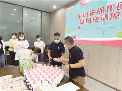其中,仁和镇总工会将顺义区总工会配发的350份“清凉包”送到镇域内39个核酸检测点工作人员手中,叮嘱参与疫情防控人员注意防暑和防疫安全,并叮嘱各检测点合理安排、调整作业时间,适当增加高温作业环境下职工休息时间。同时投入18万元为辖区内从事高温一线岗位工作的职工准备了毛巾、冰糖、香皂等清凉用品,覆盖职工2300余人。