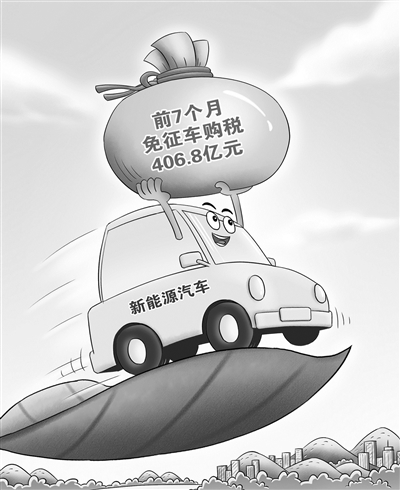 国家税务总局31日发布数据显示,今年1至7月,新能源汽车免征车辆购置税406.8亿元,同比增长108.5%,其中7月份免征车购税71.7亿元,同比增长119.1%。(8月31日 新华社)□王琪