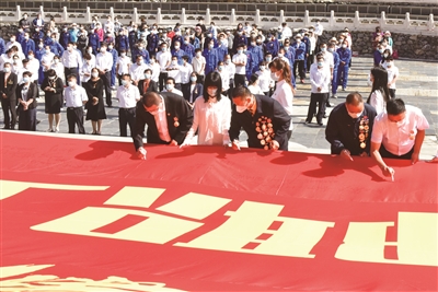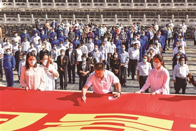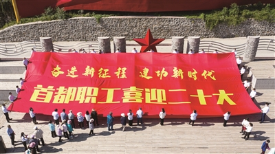 “在‘首都职工喜迎二十大’巨型横幅上,我写下了自己对党的二十大最真诚的祝福语,表达我十分激动的心情。作为首都劳模代表,能有机会在如此庄重的场合表达首都工人阶级对党的二十大胜利召开的热切期盼,我感到特别荣幸。我们将以饱满的工作热情立足岗位,拼搏奉献,以实际行动迎接党的二十大胜利召开。” 北京市劳动模范、蒲洼乡东村党支部书记孙广亮说。9月2日上午,由北京市总工会主办的“奋进新征程 建功新时代——首都职工喜迎二十大”主题活动首站在《没有共产党就没有新中国》词曲诞生地——房山区霞云岭乡堂上村举行。来自房山区各行各业的劳模、大工匠、技能人才、产业工人与新就业形态劳动者代表等共计200余人参加活动。