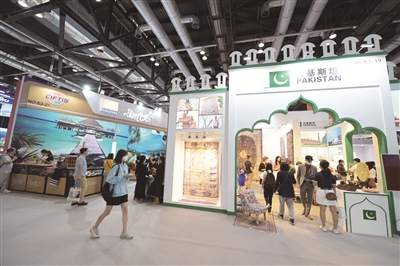 巴基斯坦的地毯、菲律宾的热带食品、爱尔兰的威士忌……71个国家和国际组织各具特色的展台,让观众们足不出馆,就能“环游世界”。