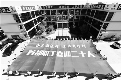 本报讯 (记者 邱勇) 9月6日上午,由北京市总工会主办的“奋进新征程、建功新时代——首都职工喜迎二十大”主题活动在北京建工路桥集团地铁施工一线举行。一面长20米、宽10米,印有“奋进新征程、建功新时代——首都职工喜迎二十大”字样的巨型横幅,吸引广大职工纷纷写下对党的二十大最真诚的祝福。