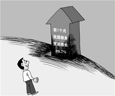 记者从商务部获悉,1—7月,我国服务贸易继续保持平稳增长。服务进出口总额33922.1亿元,同比增长20.7%;其中服务出口16422.4亿元,增长22.8%;进口17499.7亿元,增长18.9%。服务出口增幅大于进口3.9个百分点,带动服务贸易逆差下降20.1%至1077.3亿元。7月当月,我国服务进出口总额4999亿元,同比增长15.7%。(9月5日《光明日报》)□老笔