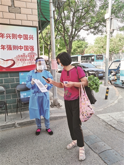 5月16日,受岳各庄市场疫情影响,青塔街道民岳家园小区被调整为管控区。西罗园街道接到前去支援的任务,街道工会工作者们再次加入了支援队伍,积极参与民岳家园核酸检测点秩序维护、扫证验码、解答居民咨询问题、响应居民诉求等工作。