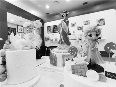 残疾人翻糖蛋糕制作也是展示的一大亮点,高级软件工程师、中级西式面点师、获得SK糖王高级人偶认证的残疾人为大家带来充满艺术享受的制作,让人拍案叫绝。两名智力残疾人受邀进行足疗项目展示,他们娴熟的技能为智力残疾人就业打开另一扇窗。图为在展览现场展示的创意作品。