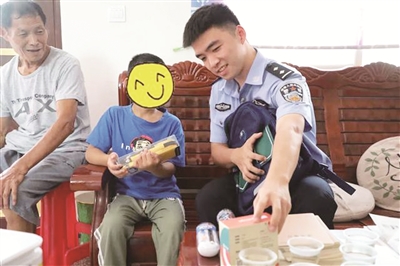 近日,浙江丽水遂昌大柘派出所民警驱车来到湖山,将一张新办好的居住证和学习用品,交到了小梁(化名)手中,这是民警花了一个多月的时间,奔走了6000多公里的路程办下来的。所里民警还自费采购了一批学习用品送给他。