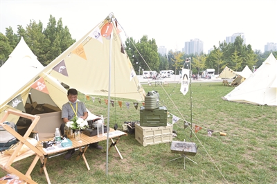 9月17日上午,伴随着《我和我的祖国》悠扬的旋律,500余名露营爱好者在通州区运河文化广场共同拉开了首届北京露营大会的帷幕。本次大会为期两天,活动现场规划了露营区、房车体验区、帐篷展示区、休闲娱乐综合区等,充分满足广大露营爱好者的多元化需求。此外,现场设置了帐篷绳结技能课堂、音乐派对、皮影戏、卡丁车、露天电影、飞盘等项目,涵盖了科技体育、户外体育、休闲体育、智慧体育等多类别体育活动,让市民们尽情享受体育的魅力。本报记者 彭程 摄影报道