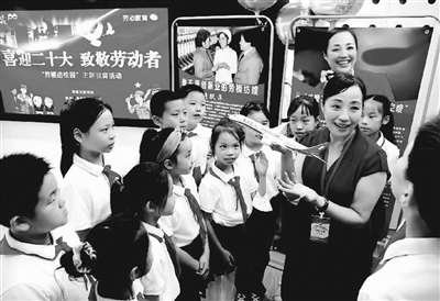 日前,上海黄浦区蓬莱路第二小学举行“喜迎二十大,致敬劳动者——劳模进校园”主题教育活动,许跃萍、朱巧娣、吴尔愉、陶依嘉、陈燕平、陈秀萍六位全国劳模和市劳模走进校园,共同见证劳模工作室落户该校。 (9月22日《劳动报》)