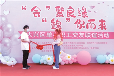 “会聚良缘·魏你而来”“会聚良缘·爱在瓜乡”,今年下半年,大兴区总工会接连组织了两场单身职工交友联谊活动,为近两百名产业工人单身青年开启浪漫之约。传统老套的联谊形式较难吸引年轻人参与活动,值得一提的是,主办方大胆创新了活动形式,活动以新颖的主题创意,有趣的任务设计,为广大青年职工搭建了一个沉浸式联谊平台。