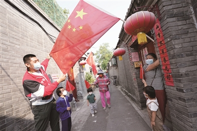 国庆节即将到来,京城处处洋溢着节日的氛围。昨天,在西城区什刹海地区的胡同里,点缀在青砖灰瓦间的五星红旗迎风飘扬,形成一道亮丽的风景线。